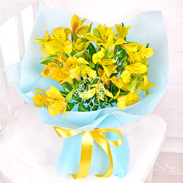 Альстромерия желтая -5 шт., упаковка, лента.